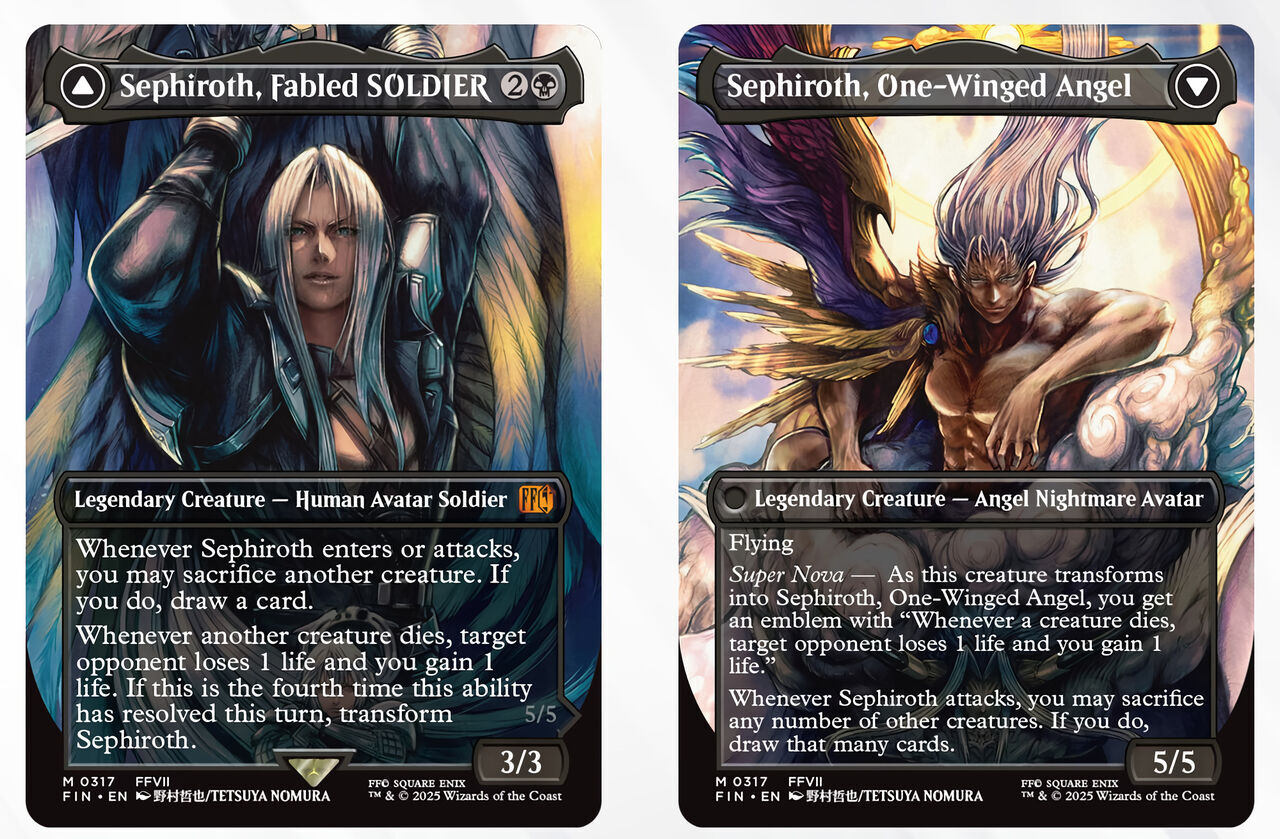 Como os hemos contado recientemente en Vandal Random, Magic: The Gathering, el juego de cartas intercambiables más famoso y popular del mundo, recibirá próximamente una expansión dedicada a la saga Final Fantasy y en los últimos días hemos podido echarle un vistazo a muchas de las cartas que formarán parte de este set. Entre ellas, hemos podido ver un par de Sefirot, el gran villano de Final Fantasy VII, cuyas ilustraciones han sido realizadas por el mismísimo Tetsuya Nomura, su artista original y el director creativo de la trilogía de Final Fantasy VII Remake.